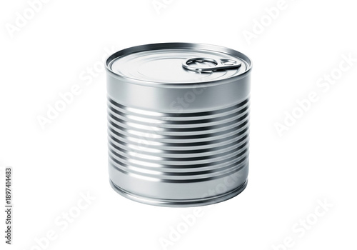 tin can, pull tab, isolated, white background, kitchen, cooking, culinary, storage, container, cylindrical, shiny, reflective, ridged, smooth, simple, minimalistic, still life, closeup, detailed, crisp, clean, modern, industrial, everyday, object, item, product