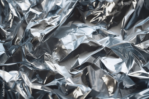 Silver crumpled metal foil texture
