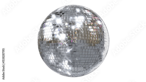 Silver Disco Mirror Ball Covered in Small Reflective Mirrors Transparent Background
