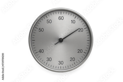Silver metallic stopwatch on transparent background, isolated clock face view