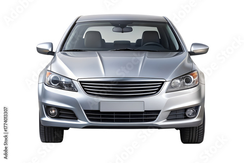 Silver sedan car with a modern design, isolated on transparent background, perfect for family
