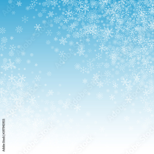 Silver Snowfall Vector Blue Background. Xmas