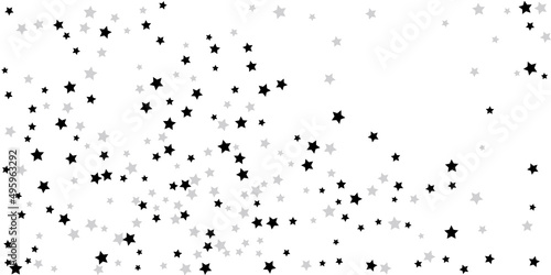 Silver star confetti. Falling stars on a white background. Illustration of flying shining stars. Decorative element. Suitable for your design, postcards, invitations, gift, vip.