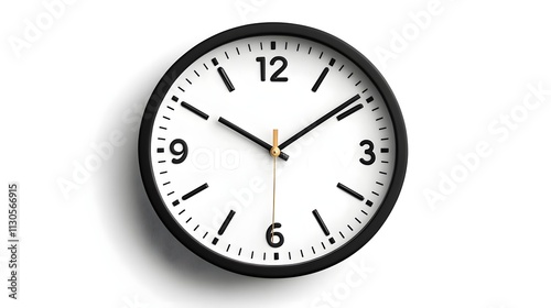 Simple and Elegant Wall Clock with Black Frame and White Face Displaying Standard Time for Minimalist Home Decor or Office Settings