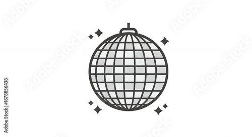 disco ball, graphic design, black-and-white, celebration, party, music, minimalism, illustration, design element, festive, logo design, merchandise, digital artwork, graphic, disco