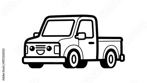 truck, pickup, vehicle, illustration, simple, black, white, line, drawing, minimalist, transport, automotive, cartoon, graphic, design, icon, symbol, utility, work, rural, country