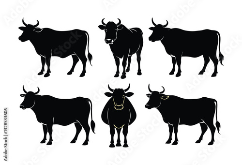 Simple Black and White Silhouettes of Cows set