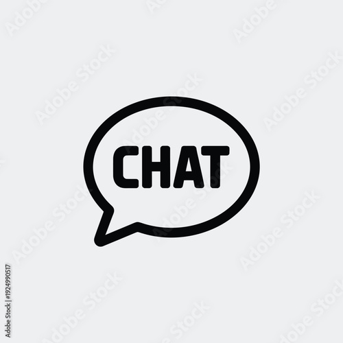 Simple black and white speech bubble icon labeled chat isolated on white background, Vector, illustration