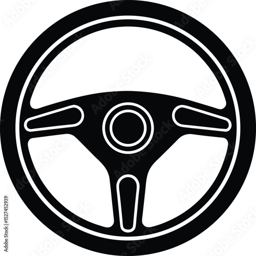 Simple black and white steering wheel icon