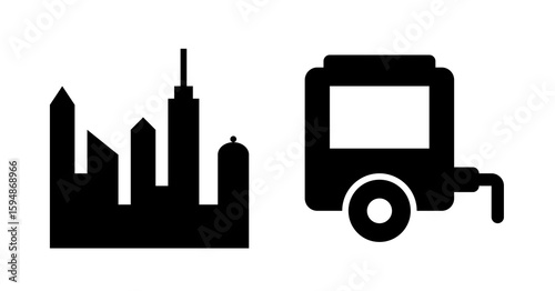 Simple Black Icon: Cityscape and Trailer Silhouette