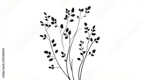 Simple black leaf branches, minimalist design, white background, home decor
