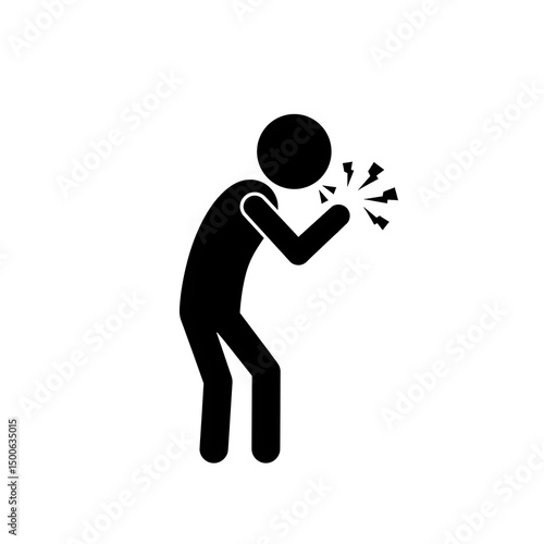 Simple Black Silhouette Coughing Person Stick Figure Pictogram Illustration