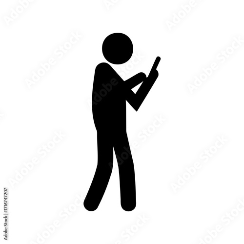 stick figure, silhouette, person, mobile phone, smartphone, communication, contraption, technology, black, white, app, connected, cyberspace, texting, chatting, online, user, consumer, modern, contemporary, digital, device, touch screen, lifestyle, portable, electronic, network, wireless, simplicity, basic, icon, isolated, symbol
