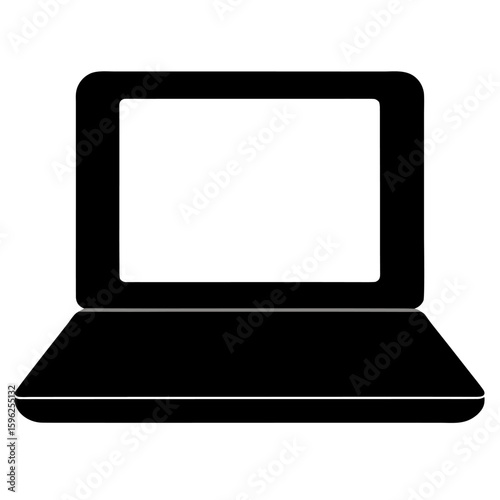 laptop, computer, silhouette, outline, icon, graphic, design, technology, digital, electronic, device, portable, open, screen, keyboard, minimalist, simple, clean, black, white, background, isolated, cut-out, symbol, illustration, modern, business, work, communication, cyberspace, web
