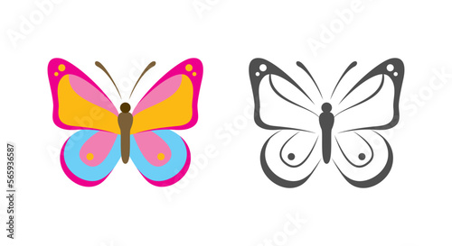 Simple butterfly multicolor and black and white vector illustration. Icon design element. Logo concept.