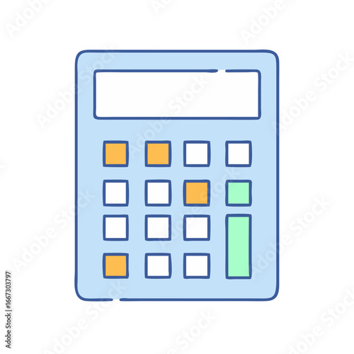 Simple Calculator Cartoon Illustration with Blue Outline and Different Colored Buttons