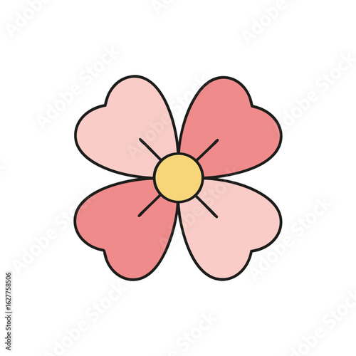 flower, pink, yellow, cartoon, illustration, simple, cute, floral, blossom, nature, botanical, garden, spring, summer, design, icon, clip art, drawing, art, graphic, isolated, white background, decoration, element, symbol, organic, botany, plant, beauty