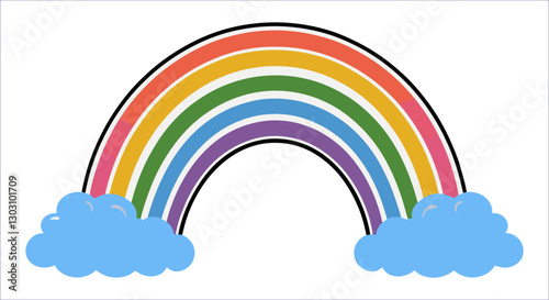 Simple cartoon rainbow with clouds vector, Bright rainbow and clouds colorful vector art, Colorful rainbow and blue clouds vector illustration