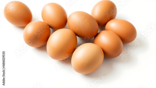 Simple composition of brown eggs on a pure white background, highlighting natural beauty.