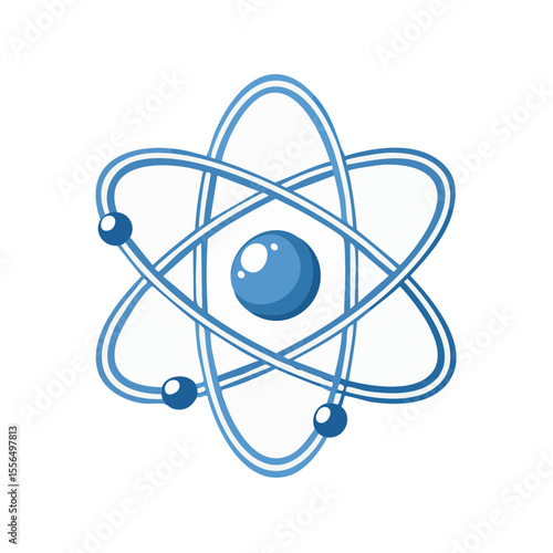 Simple Flat Atom Illustration Showing Structure and Orbits in Blue and White on Black Background for Science Education