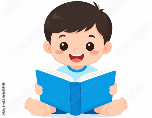 Simple flat design icon of a student reading a blue book, clean and minimal style, ideal for education, learning, or school-related themes