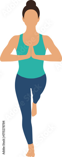 Simple Flat Style Tree Pose Yoga Woman Balancing Illustration Graphic