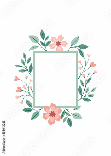 Simple floral square frame with an empty center on a white background. Vector illustration