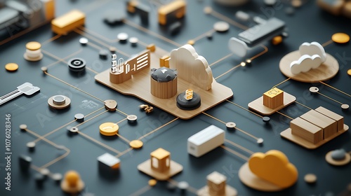 Simple flowchart with icons representing, Cloud 3d icon
