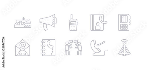 simple gray 10 vector icons set such as , incoming call, quarrel, contact, emails, voice recorder, contacts. editable vector icon pack