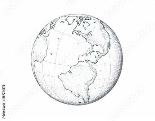 globe, earth, earth, map, continent, line, circle, vignetting, drawing, hand, crayons, shading, detail, graphic, outline, country, simple, artistic, world map, education, geography, design, illustration, visual