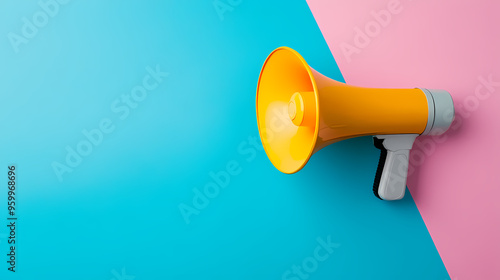 yellow, megaphone, pink, blue, contrast, background, object, isolated, sound, volume, communication, message, tool, shape, toy, design, bright, clear, simple, creative, concept, vintage, decorative, geometric, modern, symbol, device