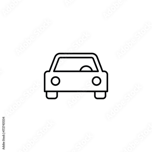 car, automobile, vehicle, icon, symbol, transportation, driving, road, travel, front, view, outline, line, art, drawing, illustration, minimalist, simple, clean, graphic, design, vector, white, background, sedan, auto, motor, headlamp, windscreen, wheel