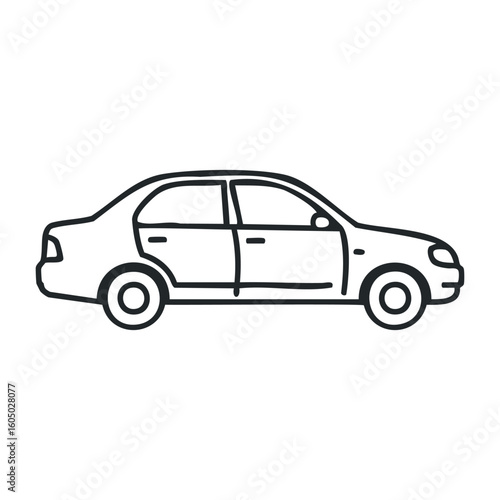 sedan, car, line, drawing, white, vehicle, automobile, vignetting, outline, sideview, transport, simplistic, design, minimalist, black, wheel, window, door, handle, bumper, headlamp, contour, transportation, graphic