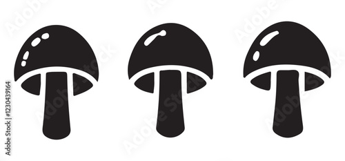 mushroom, silhouette, vector, icon, fungal, nature, forest, plant, food, set, simple, design, graphic, art, image, artwork, element, cute, small, round, white, cap, stem, drawing, illustration, symbol