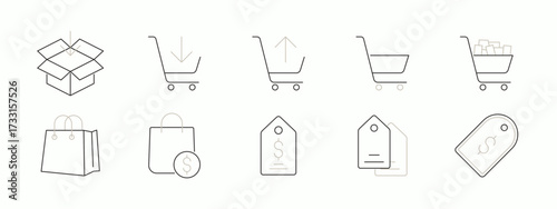 minimalist, app, retail, shopping bag, discount, outline, simple, design, economy, product, commerce, signs, symbol, concept, vector, icon, illustration, shopping cart, finance, platform, advertising, e-business, business, shop, store, marketing, cart, connection, payment, shopping, market, system, virtual, interface, network, digital, innovation, purchase, technology, transaction, checkout, basket, invoice, set, collection, icon