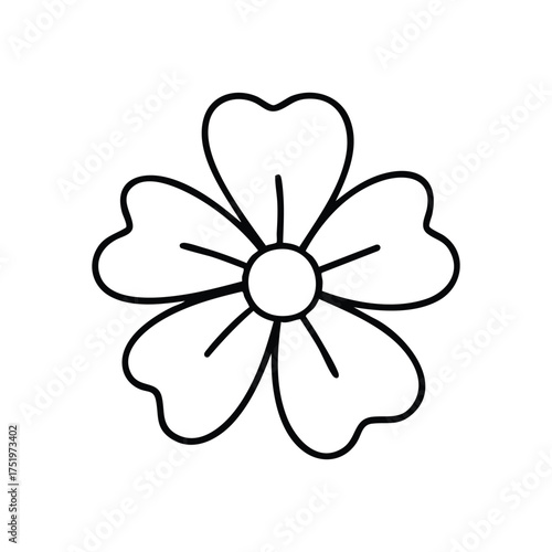 (Simple Outline Blossom Graphic. Elegant five-petal flower illustration, minimalist line art evoking nature, growth, and affection. Perfect for crafts, branding, or decor projects.)