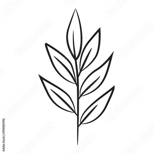 Simple outline drawing of a botanical sprig with several leaves isolated on a transparent background vector illustration