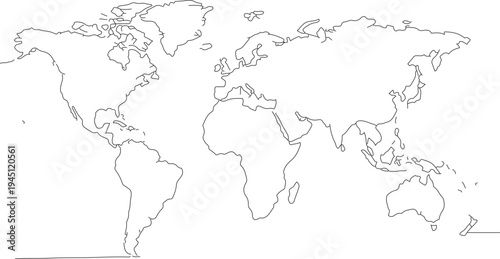Simple Outline World Map Geography Countries Continents Detailed Land Drawing