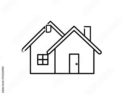 house, home, building, vignetting, outline, simple, drawing, 2, joined, roof, window, door, chimney, design, architecture, line, style, icon, symbol, vector, illustration, modern, minimal, graphic, silhouette, exterior, property, residential, bungalow, family
