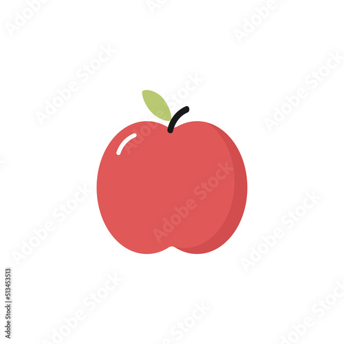 Simple red apple icon in a flat cartoon style on a white isolated background. Vector illustration