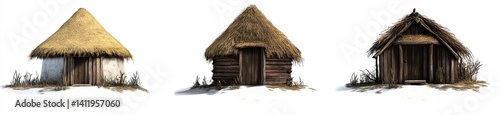 hut, cabin, bungalow, dwelling, house, shelter, ancient, primitive, rural, farming, village, wood, thatched, straw, roof, simple, rustic, construction, building, history, architecture, mediaeval, isolated, grass, ground, nature, exterior, design, historical, traditional, farmhouse, home, wooden, old, grassy, timberland