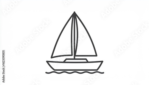 sailboat, sailing, ship, nautical, water, wave, outline, graphic, illustration, simple, line, art, vector, monochrome, black, white, design, boat, yacht, symbol, icon