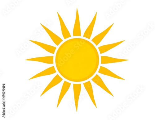 sun, yellow, bright, warm, summer, hot, radiant, circle, ray, simple, graphic, icon, design, flat, cartoon, illustration, vector, image, symbol, celestial, day, light, energy, heat, sunny, nature, cheerful, high-coloured