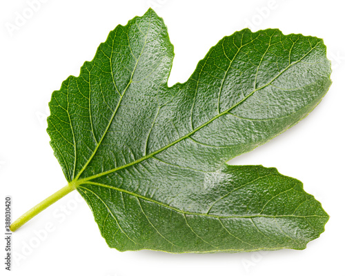 single black currant leaf isolated on white background.