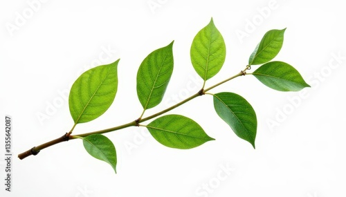 Single branch isolated on white background with subtle leaf texture and gentle bend, nature, foliage, single