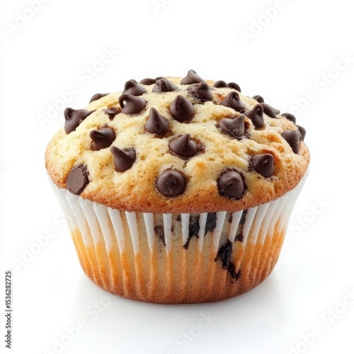 muffin, baked, dessert, sweet, food, chocolate chips, golden brown, single, pastry, treat, snack, delicious, deliciously, white background, photo, food photography, bakery, confectionery, closeup, detail, appetising, homemade, fresh