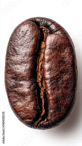 Single coffee bean, rich color, against a crisp white backdrop for clarity and focus.