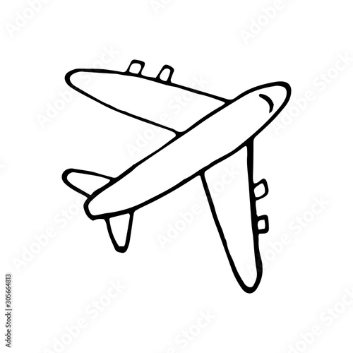 Single element of airplane in doodle summer set. Hand drawn vector illustration for greeting cards, posters, stickers and seasonal design.