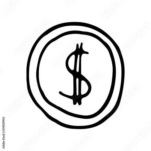 Single element of money in doodle business set. Hand drawn vector illustration for cards, posters, stickers and professional design.