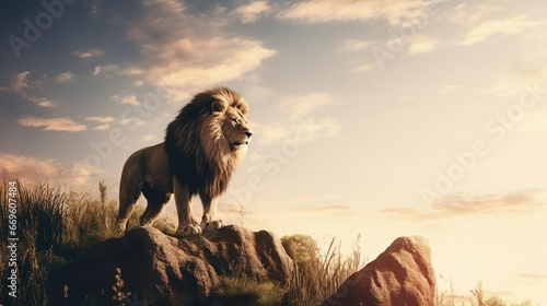 lion, wildlife, nature, natural, hill, africa, african, male, big, cat, mane, predator, wild, animal, mammal, carnivore, fur, safari, king, dangerous, hunter, proud, single, south, tanzania, pride, rock, large, power, powerful, danger, face, portrait, travel, standing, felino, leo, zoo, looking, endangered, furry, jungle, beast, park, desert, wilderness, dominant, savanna, territory